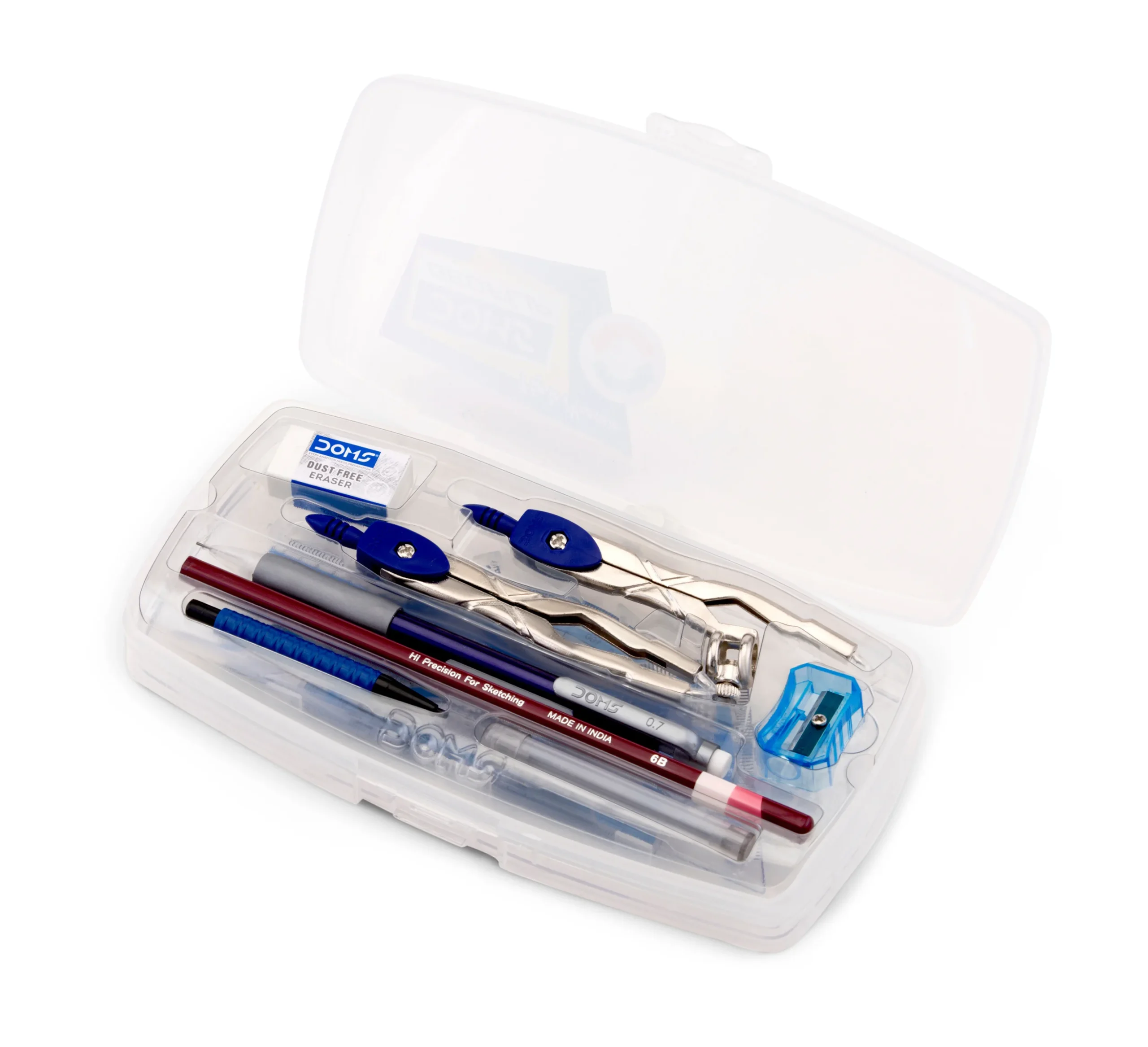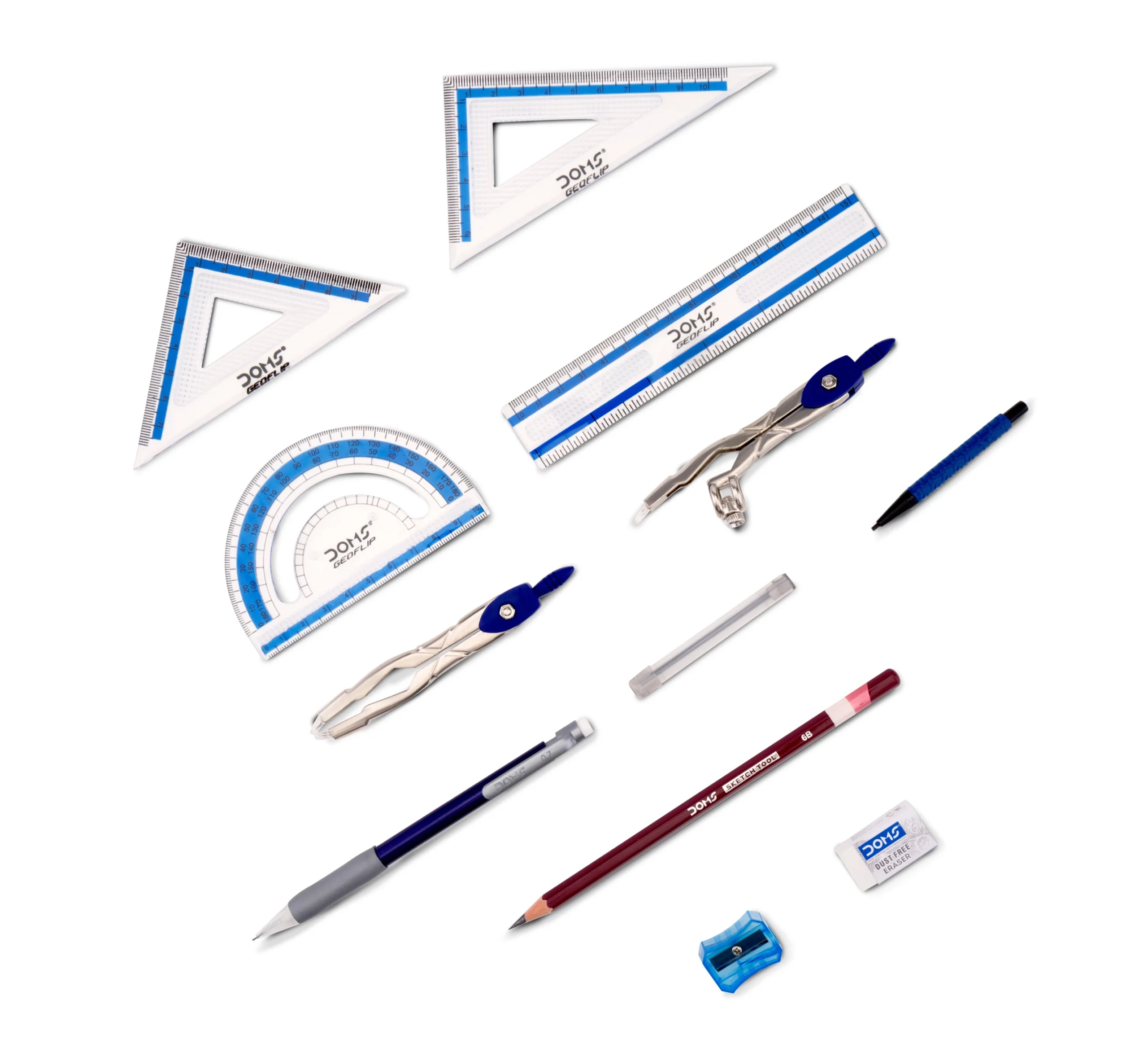 1N Compass, 1N Divider, 1N Set Square 45° & 60°, 1N Protractor 180°, 1N Scale 15cm, 1N Drawing Pencil, 1N Eraser, 1N Sharpener, 1N Lead Tube, 2N Mechanical Pencils